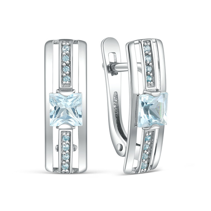Совместные покупки Сургут Ювелирные украшения и бижутерия Серьги — Серьги из серебра с sky топазом и фианитами родированные 925 пробы 04-202-0433-0