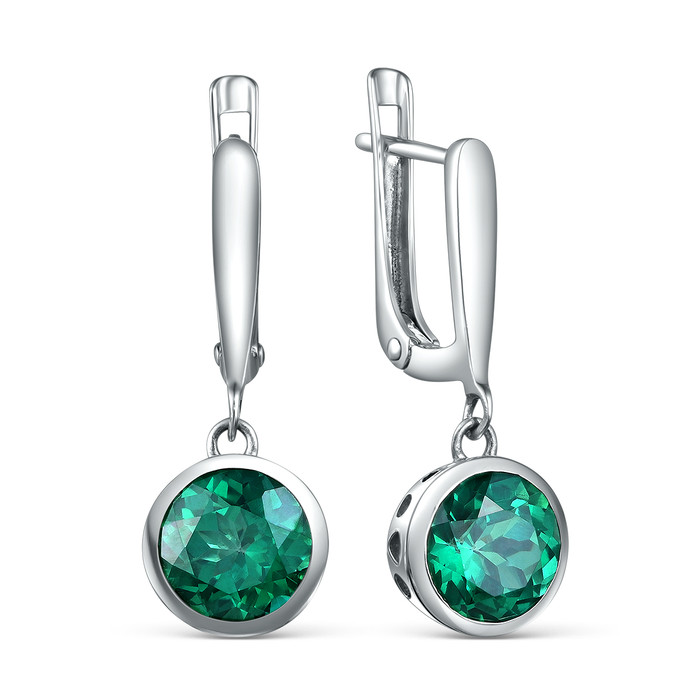 Совместные покупки Сургут Ювелирные украшения и бижутерия Серьги — Серьги из серебра с зелёным топазом родированные 925 пробы GTE-3327-T
