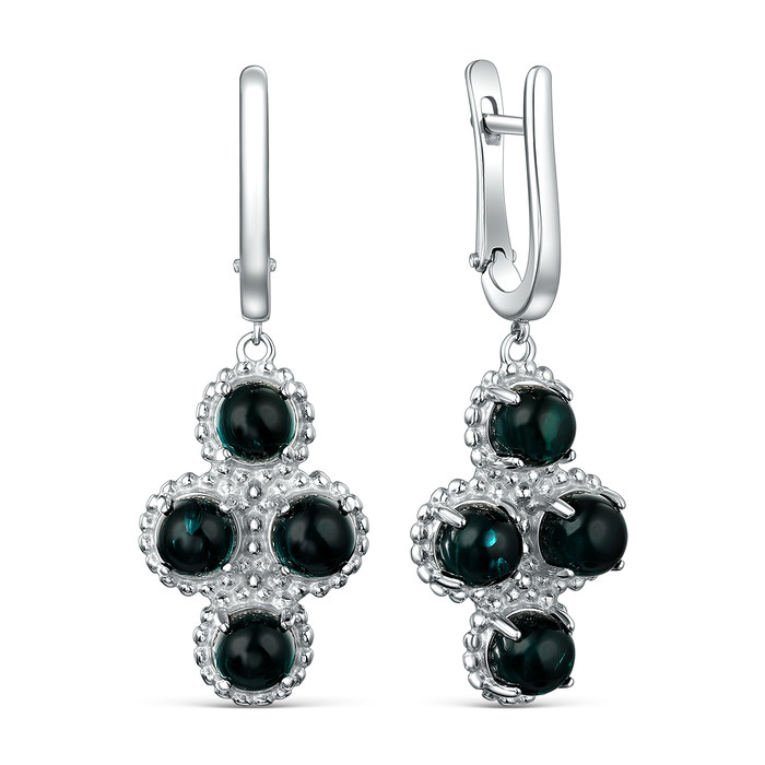 Серьги из серебра с зелёным янтарём родированные 04-802-0168-09