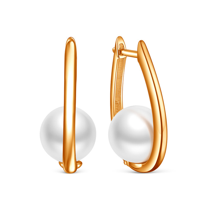 Совместные покупки Сургут Ювелирные украшения и бижутерия Серьги — Серьги из золочёного серебра с белым имитированным жемчугом 925 пробы 2-145з1001