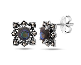 Серьги, марказит , перламутр зелёный, SL-LNJ340