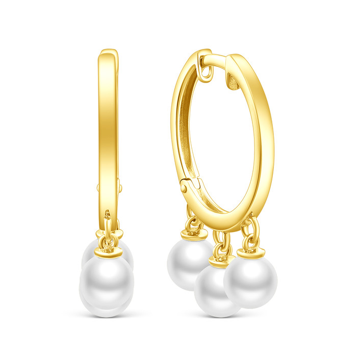 Серьги из золочёного серебра с культивированным жемчугом 925 пробы С-5003лзш1005