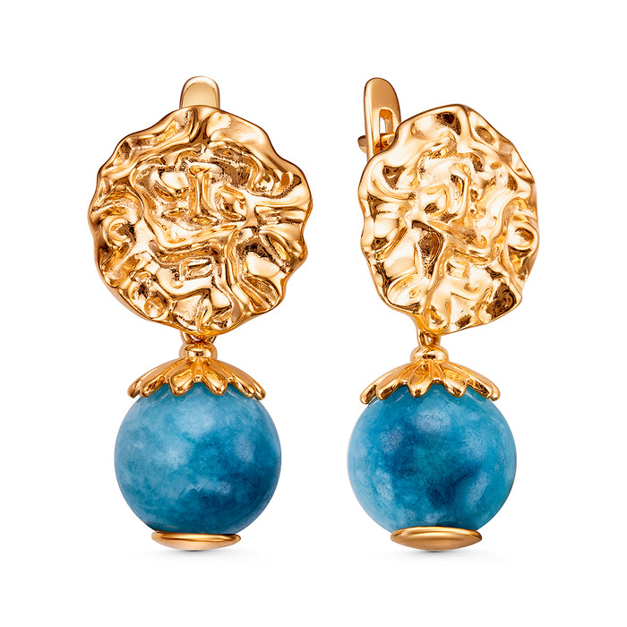 Совместные покупки Сургут Ювелирные украшения и бижутерия Серьги — Серьги из золочёного серебра с кварцем цвета голубой аквамарин 925 пробы С50109з
