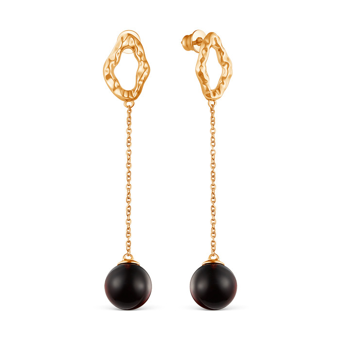 Совместные покупки Сургут Ювелирные украшения и бижутерия Серьги — Серьги из золочёного серебра с натуральным янтарём 925 пробы 2200551201