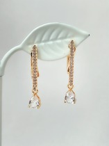 Серьги из золочёного серебра с пл.кварцем цв.лунный камень и фианитами