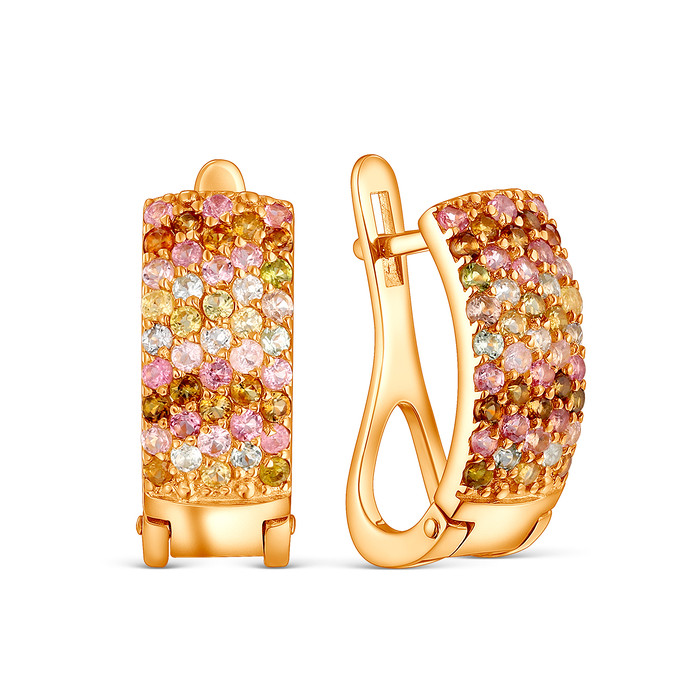 Совместные покупки Сургут Ювелирные украшения и бижутерия Серьги — Серьги из золочёного серебра с турмалином мульти 925 пробы 2-473з428