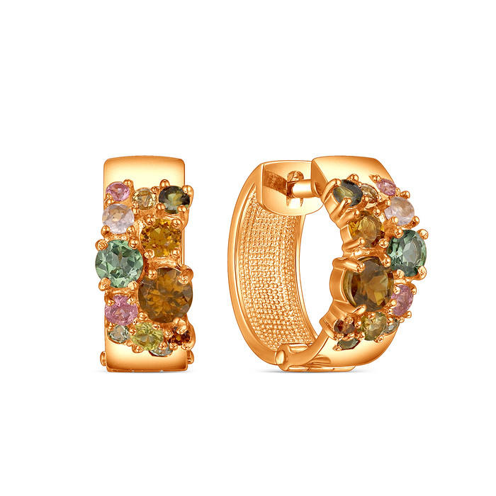 Серьги из золочёного серебра с турмалином мульти С-211з428