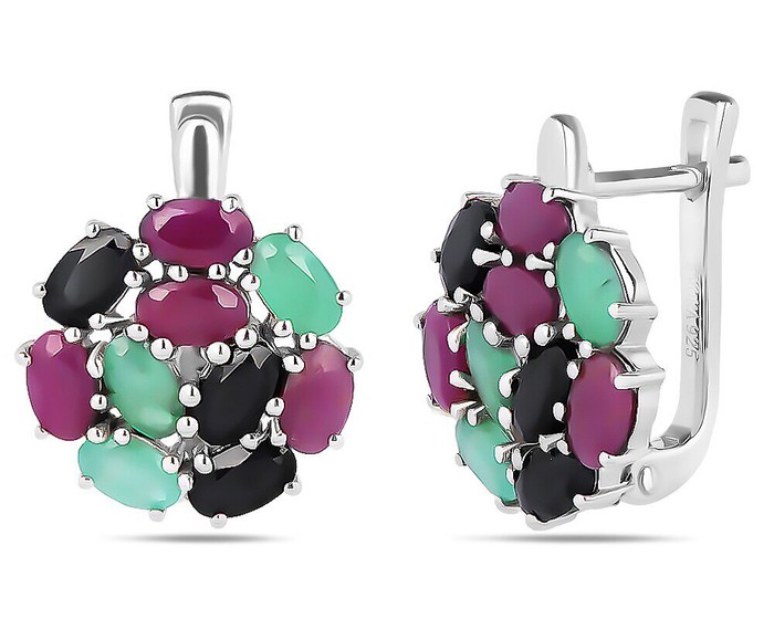 Серьги, арт.658592 Серебро Серебро 925, 5,31 гр., изумруд берилл , рубин корунд , сапфир корунд
