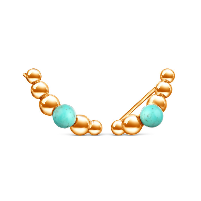 Совместные покупки Сургут Ювелирные украшения и бижутерия Серьги — Серьги каффы из золочёного серебра с натуральной бирюзой 925 пробы С-5002зш438н