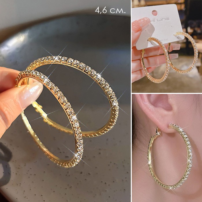 Эти серьги кольца из золотистого металла добавят блеска к вашему образу. Они идеально подходят для любого повода и приятно выделяются на фоне остальных аксессуаров. Сияющие кристаллы акцентируют внимание.Прекрасно сочетаются с любым стилем одежды. Классический вариант отлично подойдёт для вечернего выхода или светского события. Замок булавка обеспечивает надежность и лёгкость в использовании.