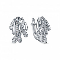 Совместные покупки Сургут Ювелирные украшения и бижутерия Серьги — Серьги-конго из серебра с алмазной огранкой родированные - диаметр 2 см 925 проб