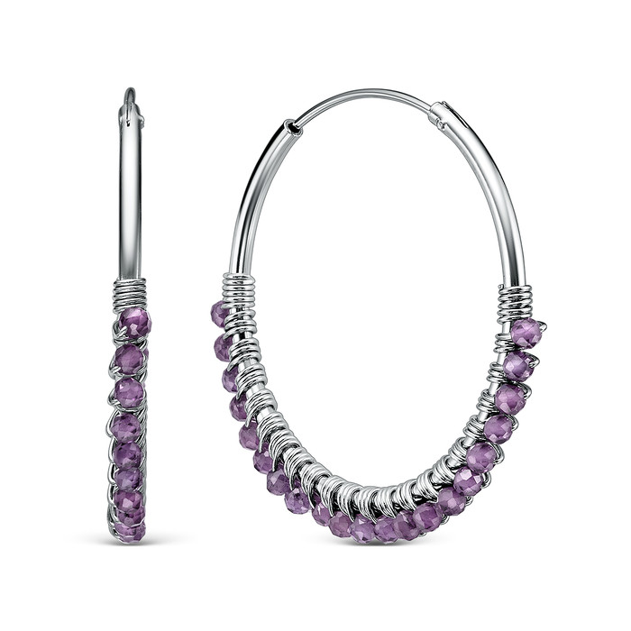 Серьги-конго из серебра с аметистом родированные 925 пробы 14500AMRH