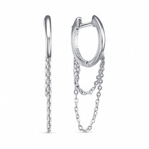 — Серьги-конго из серебра с фианитами родированные - диаметр 2 см