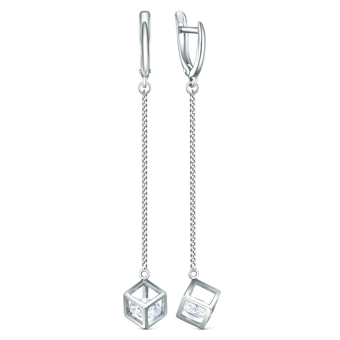 Совместные покупки Сургут Ювелирные украшения и бижутерия Серьги — Серьги кубы на цепи из серебра с фианитами родированные 925 пробы С-0093р1200