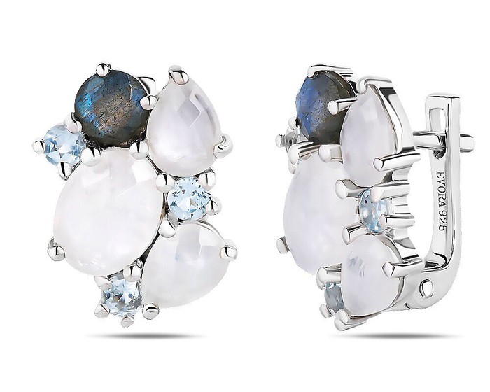 Серьги, арт.658565 Серебро Серебро 925, 6,1 гр., лабрадорит , лунный камень , топаз