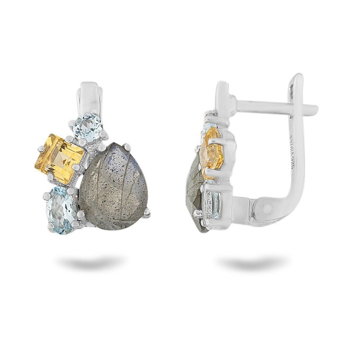 Серьги, арт.654482 Серебро Серебро 925, 4,4 гр., лабрадорит , топаз , цитрин