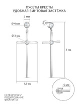 Серьги-пусеты длинные из серебра с фианитами родированные - Кресты 925 пробы 12-