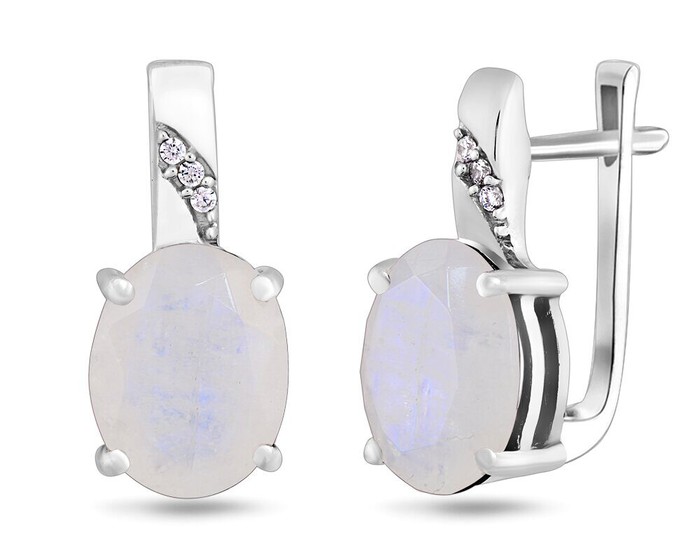 Серьги, арт.656259 Серебро Серебро 925, 3,63 гр., лунный камень