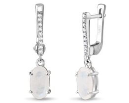 Серьги, арт.654739 Серебро Серебро 925, 1,39 гр., лунный камень зеленый