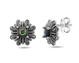 Серьги из чернёного серебра с натуральным агатом и марказитами 925 пробы HE1105-
