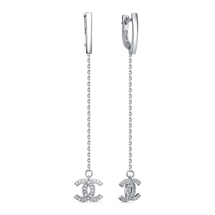 Совместные покупки Сургут Ювелирные украшения и бижутерия Серьги — Серьги на цепи из серебра с фианитами родированные 925 пробы 421-10-711р