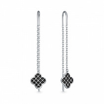 — Серьги-продёвки длинные серебро в форме клевер с фианитом родированное коллекция