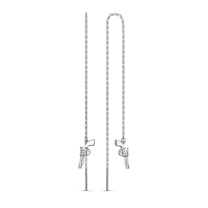 Совместные покупки Сургут Ювелирные украшения и бижутерия Серьги — Серьги-продёвки из серебра родированные - Пистолеты (длина всей цепи 17,5 см) 92