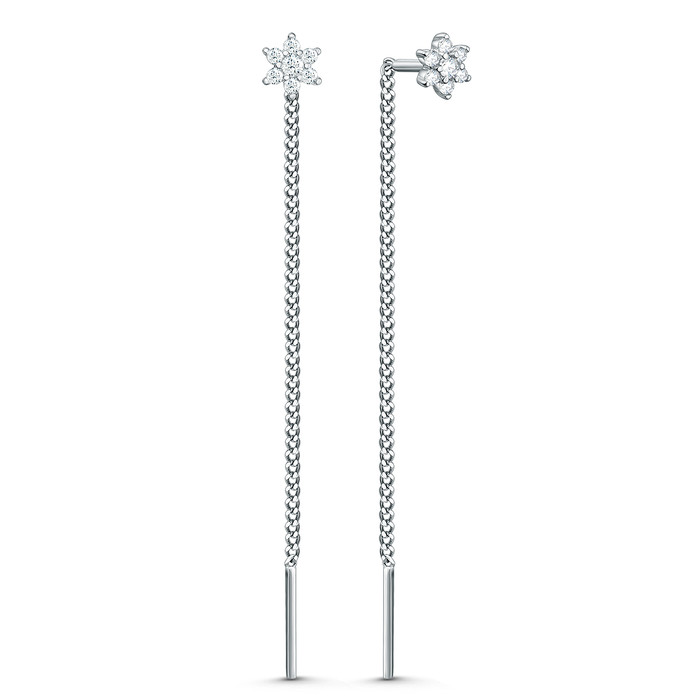 Серьги-продёвки из серебра с фианитами родированные 925 пробы Пс-035-200р