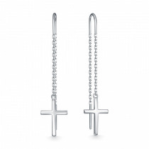— Серьги-продёвки из серебра с фианитами родированные 925 пробы с-0005р200