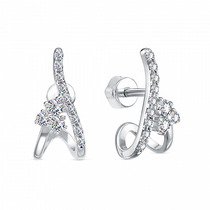 — Серьги-продёвки из серебра с фианитами родированные - Цветы 2-591р20300