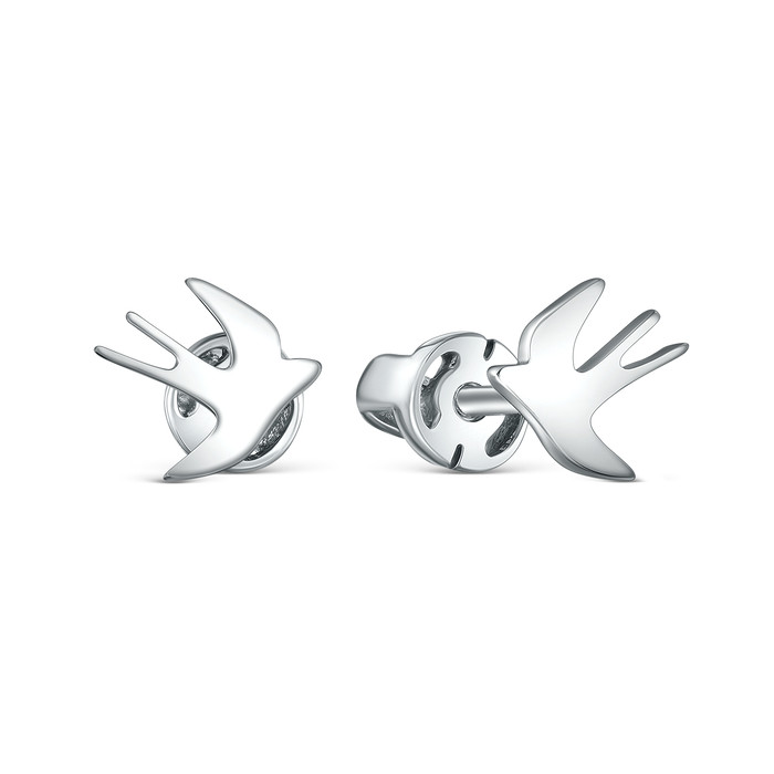 Совместные покупки Сургут Ювелирные украшения и бижутерия Серьги — Серьги-пусеты из серебра родированные - Ласточки 925 пробы М2-022р