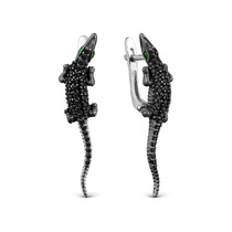 Серьги из серебра с зелёным агатом и шпинелью родированные - Крокодилы 925 пробы