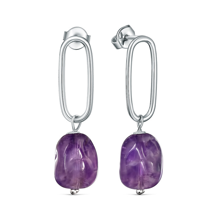 Совместные покупки Сургут Ювелирные украшения и бижутерия Серьги — Серьги-пусеты из серебра с аметистом родированные 925 пробы 18991AMRH