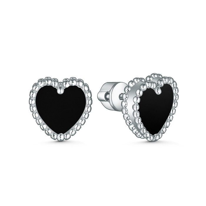 Совместные покупки Сургут Ювелирные украшения и бижутерия Серьги — Серьги-пусеты из серебра с чёрным ониксом родированные - Сердца 2-032р442