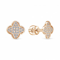 Серьги-пусеты в форме клевер гвоздики из серебра с фианитом родированные коллекц