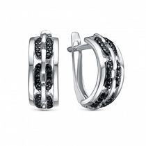 Серьги-пусеты из серебра с фианитами родированные 925 пробы С-4005-Р