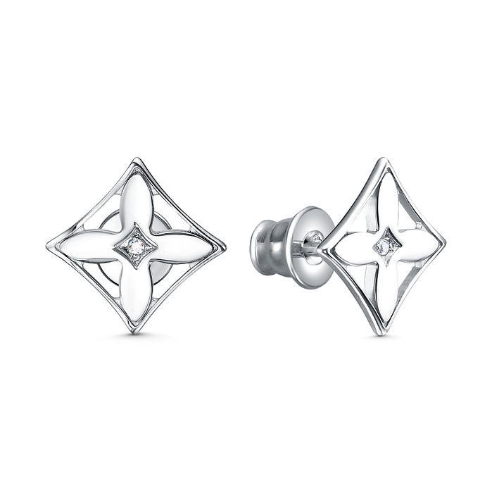 Совместные покупки Сургут Ювелирные украшения и бижутерия Серьги — Серьги-пусеты из серебра с фианитами родированные - Клевер 925 пробы 221-10-052р
