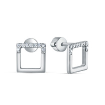 Совместные покупки Сургут Ювелирные украшения и бижутерия Серьги — Серьги-пусеты из серебра с фианитами родированные - Квадраты 925 пробы 12-1377р
