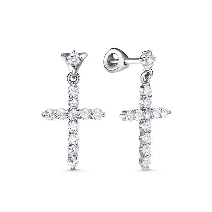 Совместные покупки Сургут Ювелирные украшения и бижутерия Серьги — Серьги-пусеты из серебра с крестами и фианитами родированные 925 пробы 21680р