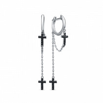 Серьги длинные форма клевер из серебра родированные коллекция quatrefoil