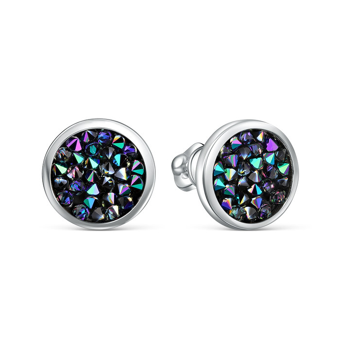 Серьги-пусеты из серебра с кристаллом Премиум Австрия Радуга родированные 925 пр