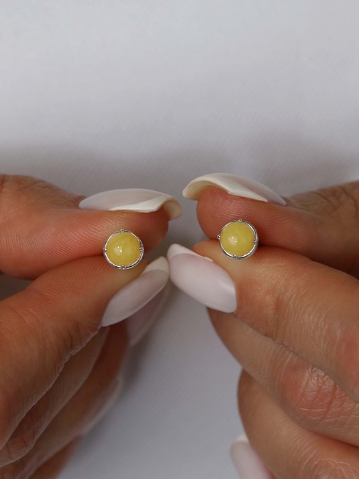Совместные покупки Сургут Ювелирные украшения и бижутерия Серьги — Серьги-пусеты из серебра с молочным янтарём родированные 4-495р640