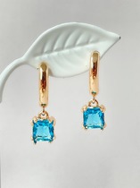 Серьги-пусеты из серебра с плавленым кварцем цвета параиба родированные 925 проб
