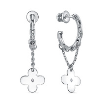 Серьги цепи из серебра с фианитами родированные - Клевер 925 пробы 221-10-045р