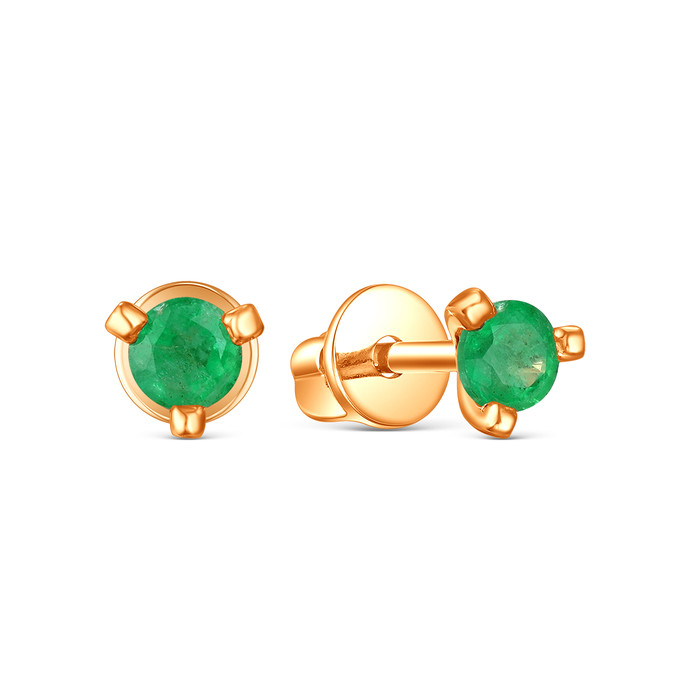 Серьги-пусеты из золочёного серебра с изумрудом 05-202-0384-33