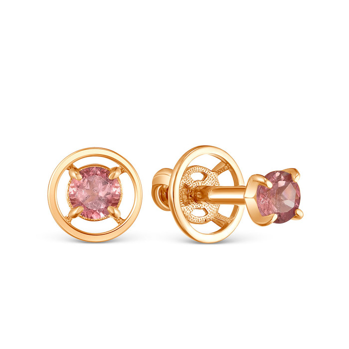 Совместные покупки Сургут Ювелирные украшения и бижутерия Серьги — Серьги-пусеты из золочёного серебра с нат.турмалином мульти 925 пробы с-2450зс42