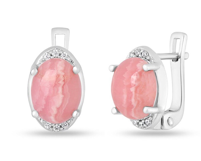Серьги, арт.656155 Серебро Серебро 925, 3,58 гр., родохрозит