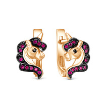 Серьги детские из золочёного серебра с корундом цв.рубин, фианитами и родировани