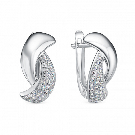 Серьги с фианитом родированные серебро 925*