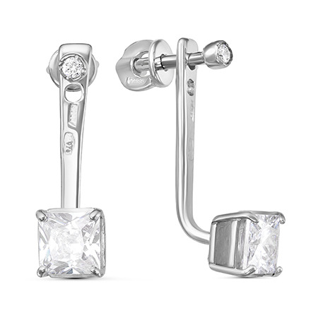 Серьги с фианитом родированные серебро 925*